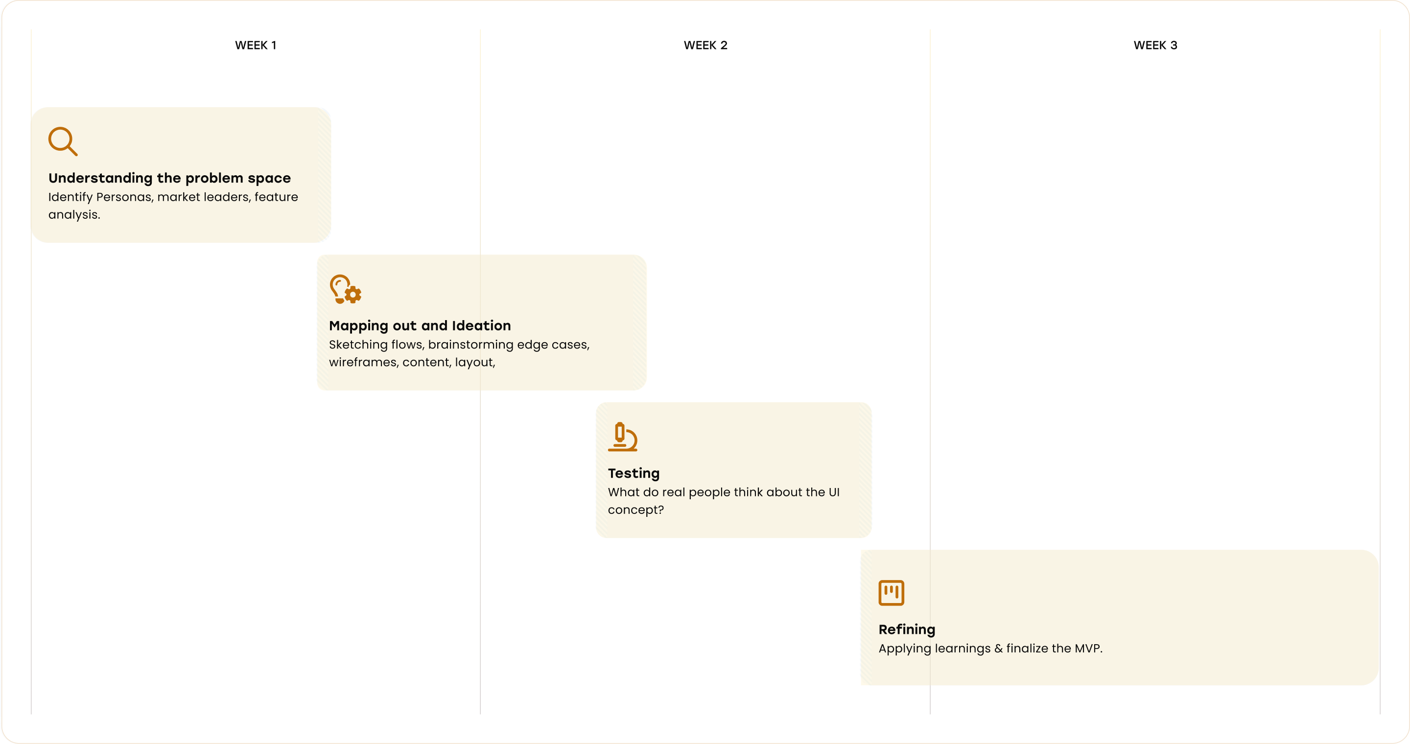 With this case study, my goal was to reflect the high-level process that I took from the point of having an idea, to understanding the problem space, ideating, testing, and finally creating a focused minimum viable product.